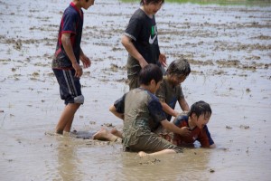 ところで、上野農場の田んぼの水は、ほかの田んぼにくらべて水が濁っています。