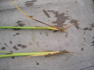 茎も比べると細いですし、稲の中ではもう穂がつき始めていますがその成長もゆっくりです。
