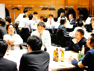 | 懇親会にて平野理事長挨拶 | 乾杯の挨拶をする中村副理事長 | 懇親会〆の挨拶、中山室長 |