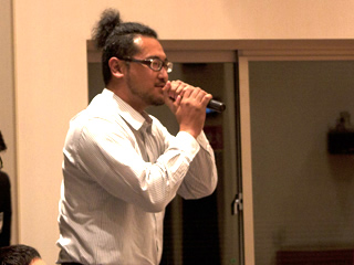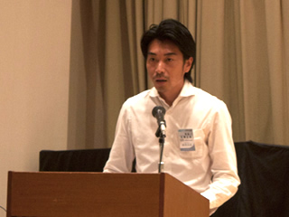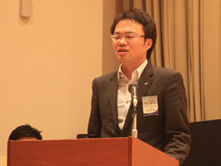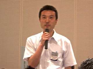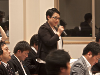 | 質疑応答で質問する上野龍一君 | 質疑応答で質問する藤巻成久君 | 質疑応答に答える島淳一氏 | ||