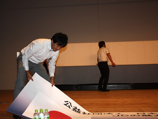 | 青年会議所の事業紹介ブース | セミナー開始前、募金活動に協力する鈴木委員長 | 新潟県内から沢山の方々が集まりました。 | ||