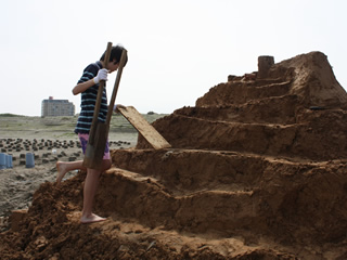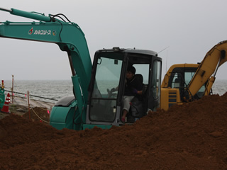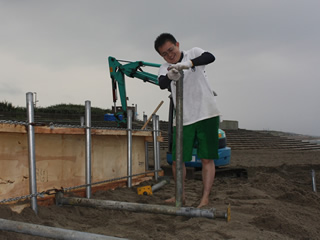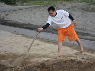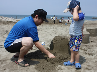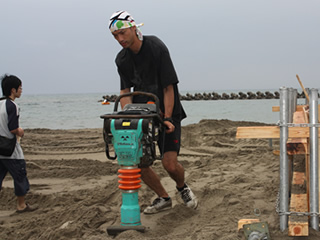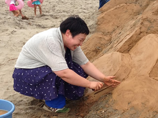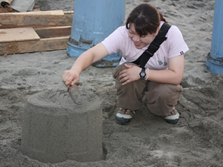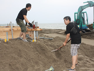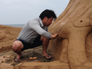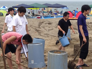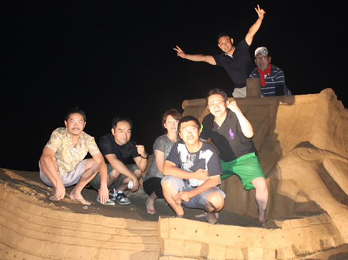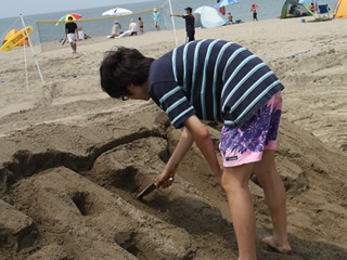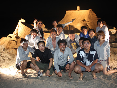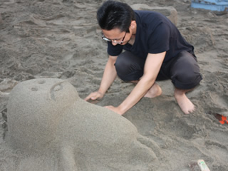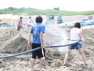 | 砂像作りをするメンバー | 砂像作りをするメンバー | メイン砂像を補修する美濃麻実子君 | ||