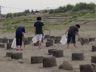 | ゴミ拾いする参加者 | ゴミ拾いする参加者 | ゴミ拾いする参加者 | ||