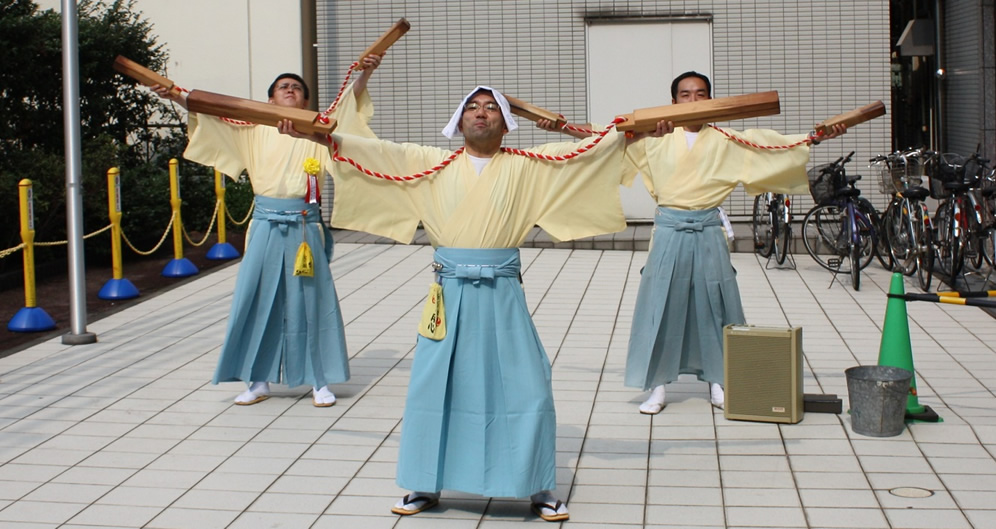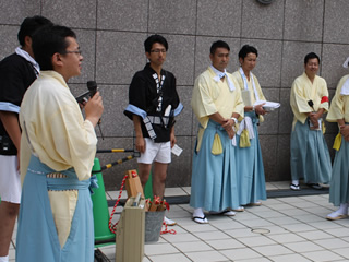| 出陣式にて(先頭 松浦直前理事長 左後方 平野理事長 右後方 中村副理事長 |