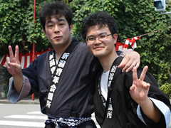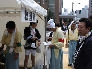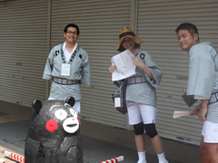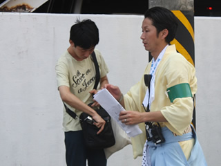 | 各自の警備役割を最終チェックするメンバー | 指示に走り回る吉田副委員長 | 各中継地点に細かく指示を送る古川委員長 | ||