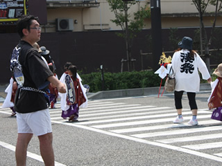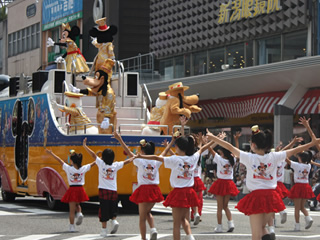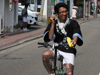 | 自転車で見回りながら指示を出す佐藤副委員長 | 連携を図りながら、各自の役割を果たします | パレードではディズニーも参加し大いに賑わいました | ||