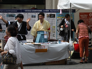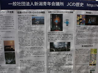 お祭り広場を仕切る八木委員長 | 新潟JCの歴史を掲示して皆さんに見て頂きました | ||