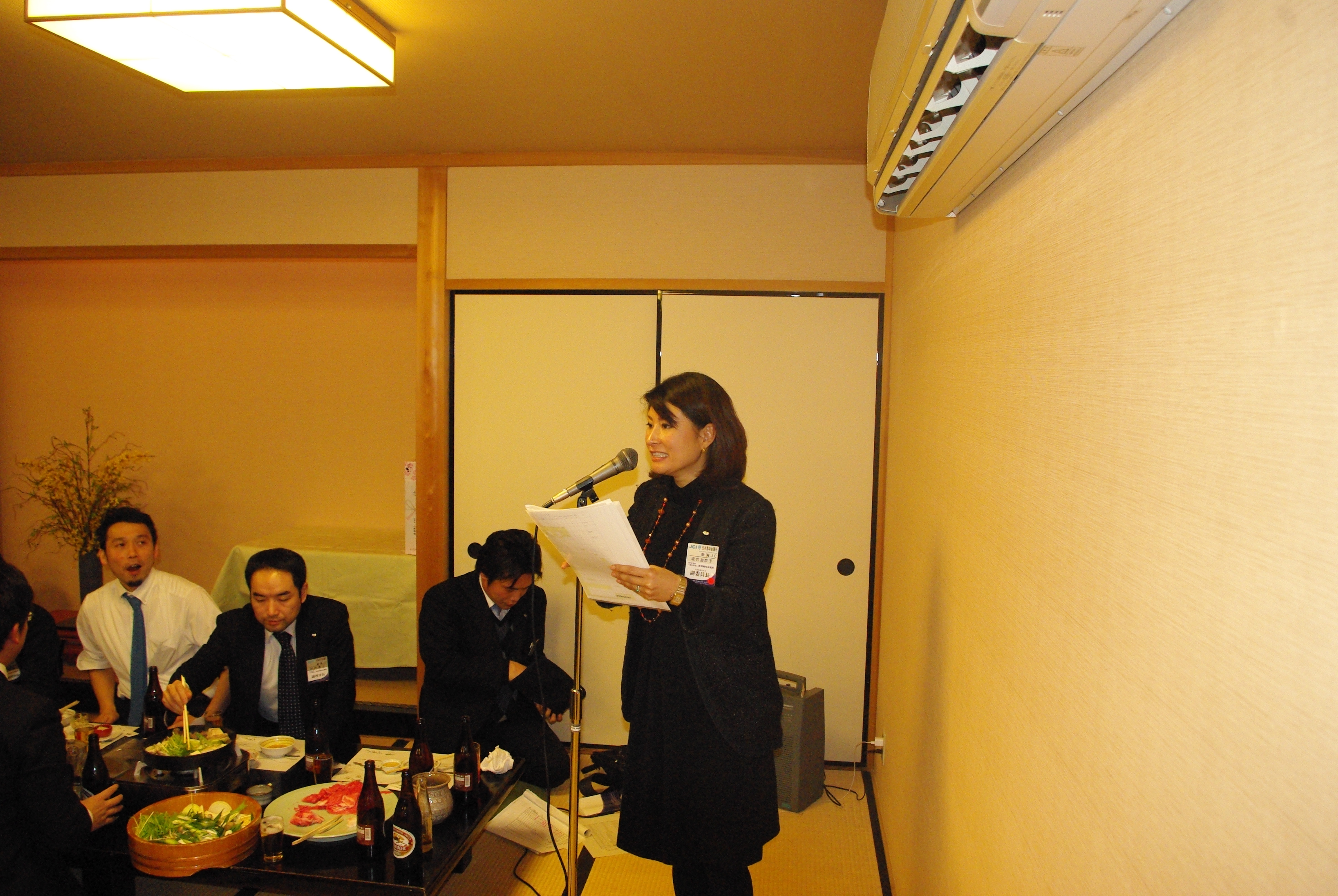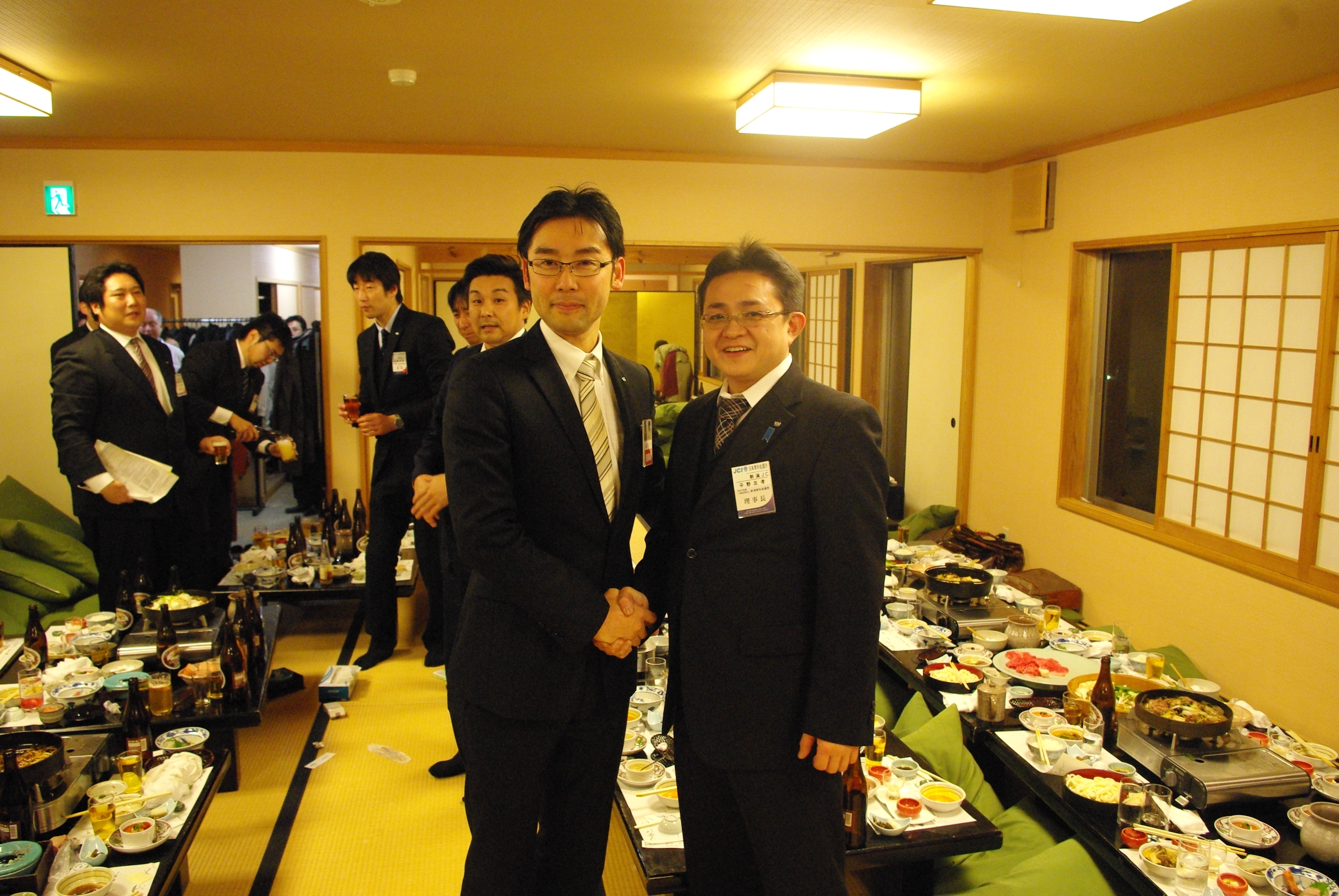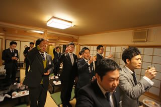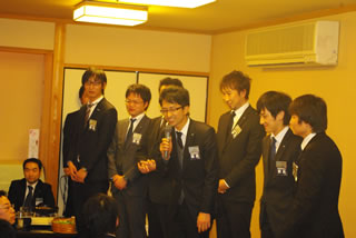 また、「京料理いそべ」にて開催されましたLOMナイトでは、平野理事長の挨拶で始まり、加藤副理事長の乾杯のご発声のもと、大盛況の中で出向者を激励することができました。