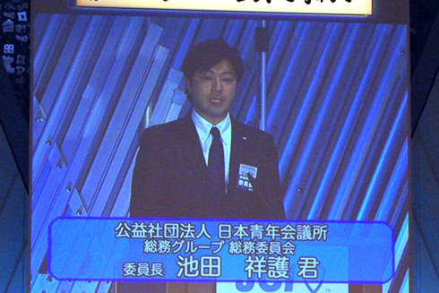 そして多くの来賓、歴代会頭のご臨席のもと、日本青年会議所第62第会頭の小畑宏介君より、熱く語りかける所信演説がありました。